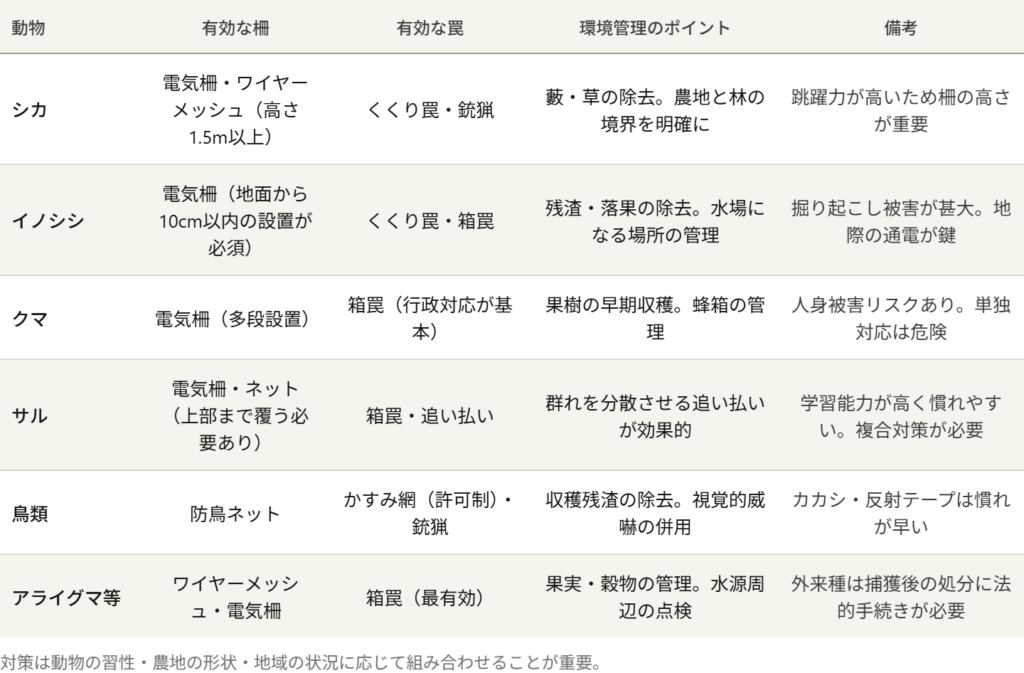 動物別の対策手段